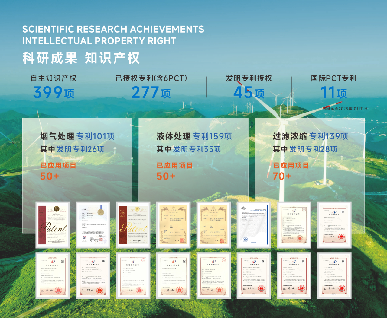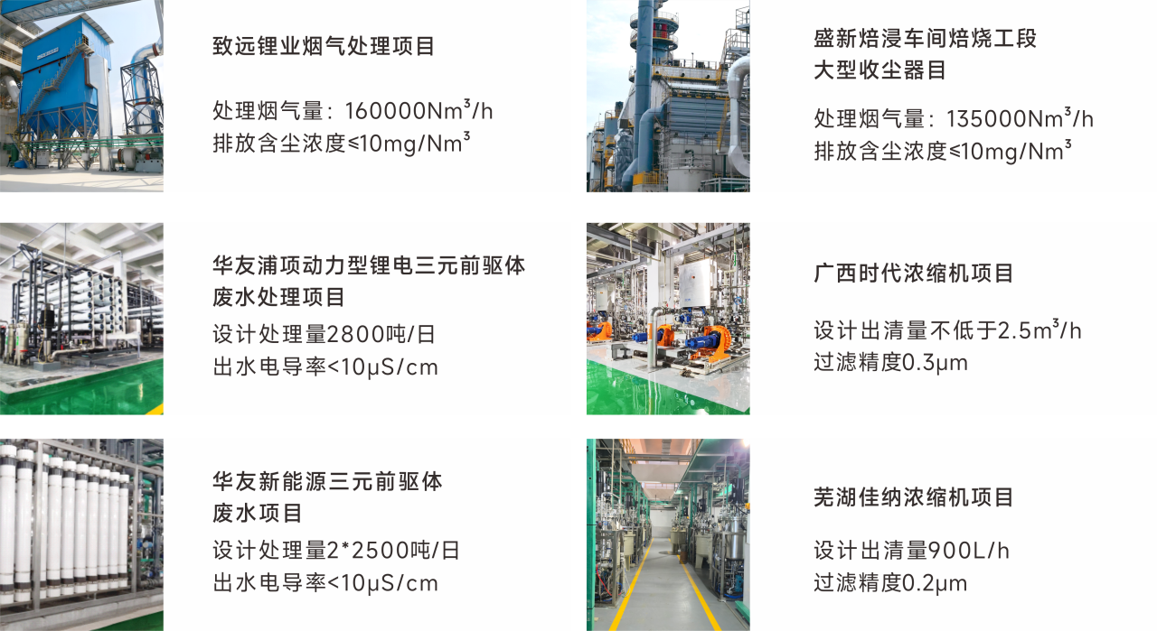 和行业内诸多大型领军上市公司、央企等建立了长期稳定的合作关系,承担58项烟气治理项目,34项水处理项目,70项过滤浓缩项目,参与政府项目40余项。
